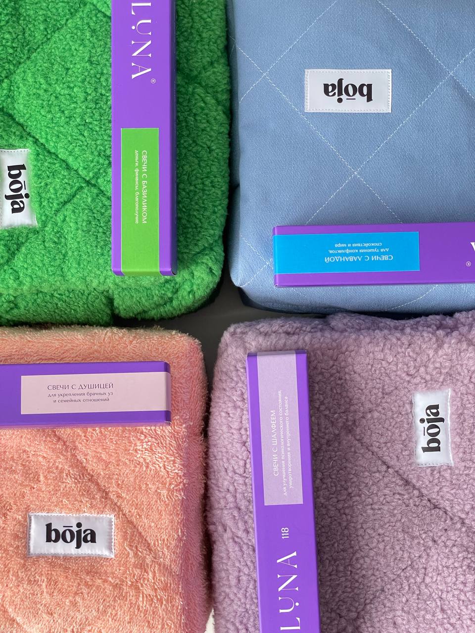 В период с 24 по 31 января 2024 года при покупке большой косметички в расцветке Money Tree, Very Berry, Bellini, First Kiss, Banana Split или Cōte d’Azur мы дарили набор с магическими свечами от MALUNA в цвет вашей косметички! А также к каждому заказу клали метафорическую карту с волшебным предсказанием!