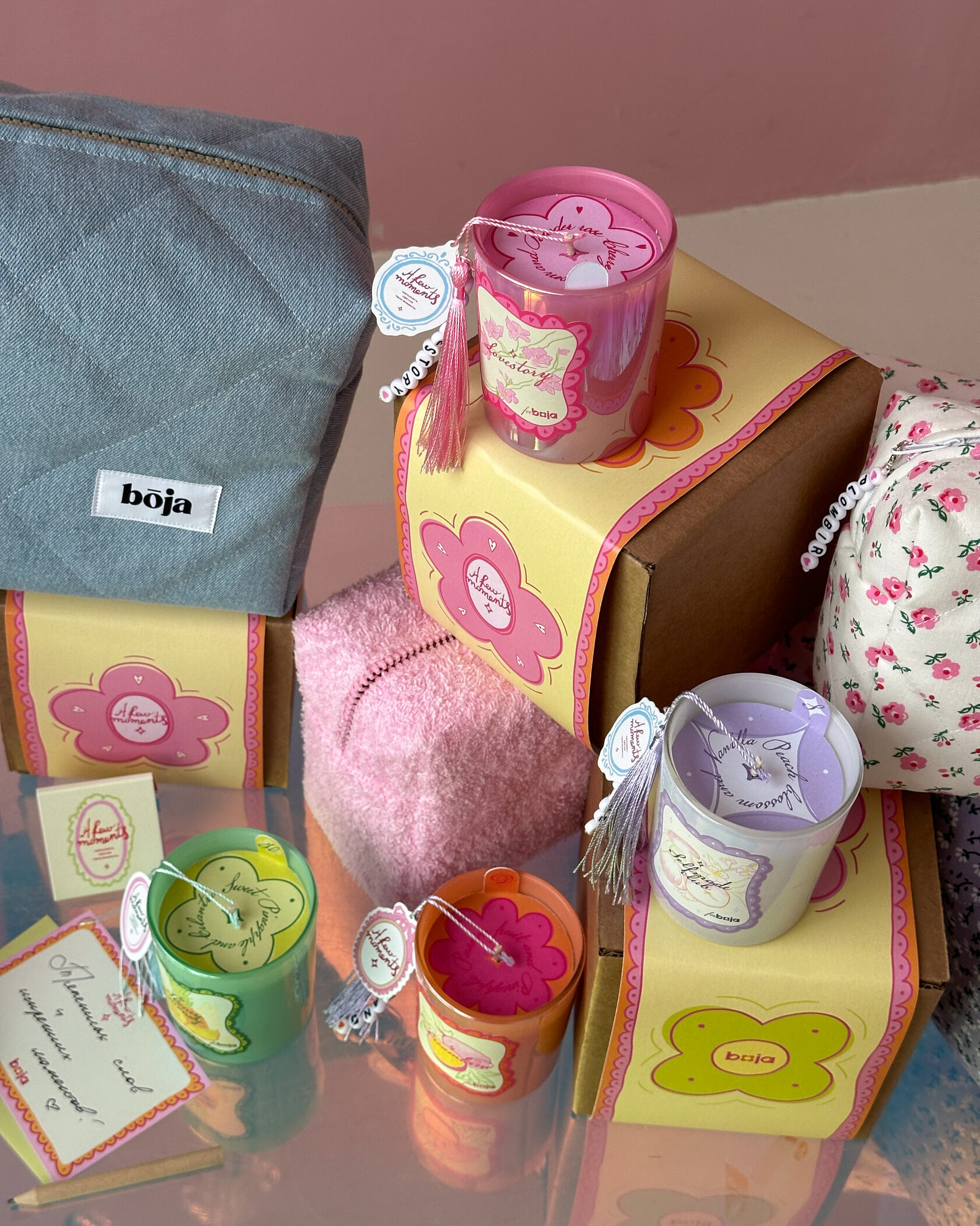 Наша волшебная коллаборация свечей boja x a few moments, исполняющих ваши желания! Каждая свеча упакована в фирменную коробочку, в которой вы найдете специальные листочки, карандаши и спички, чтобы загадать ваше желание.
