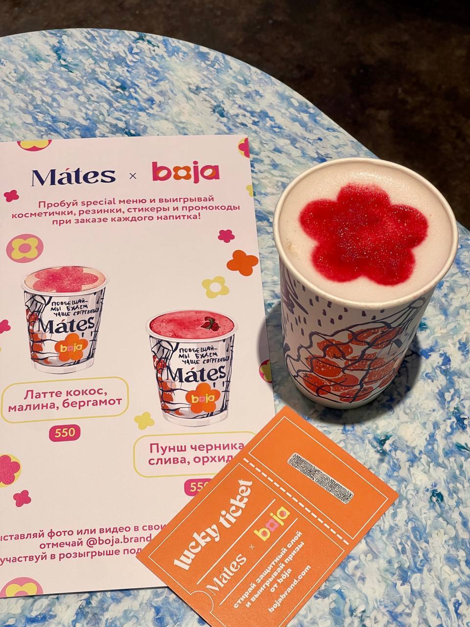 Наша яркая коллаборация с кофейнями Mates. Мы подготовили два special напитка и беспроигрышную лотерею с подарками. С каждый стаканчиком можно было не только насладиться латте и пуншем, но и выиграть косметичку, резиночку, стикерпак, наклейки или промокод на скидку.